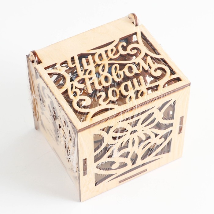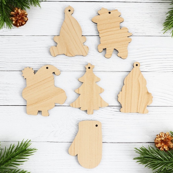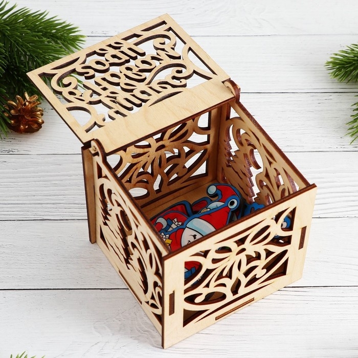 Ёлочные игрушки новогодние «Новый год: Цветные», в деревянной коробке с гравировкой, 6 шт
