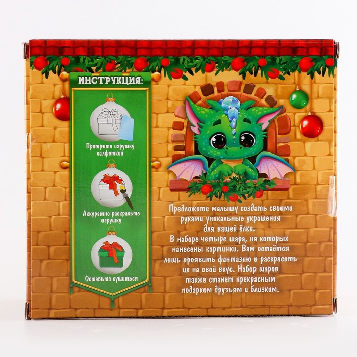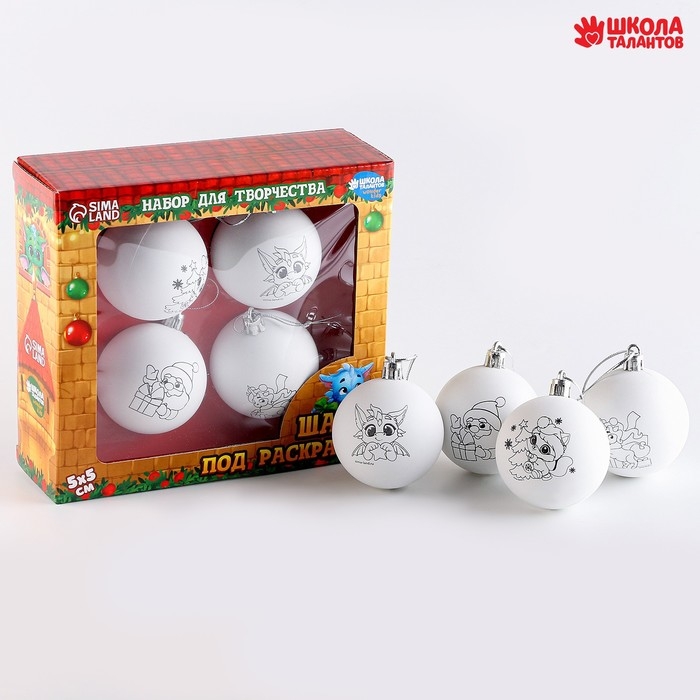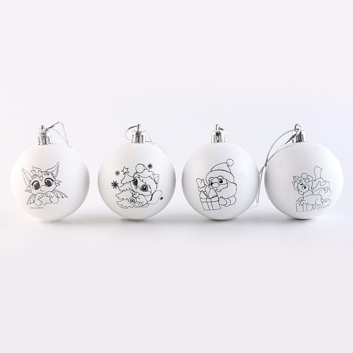 Ёлочные шары под раскраску на новый год «Исполнения мечты!», 4 шт, d = 5,5 см, новогодний набор для творчества
