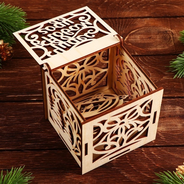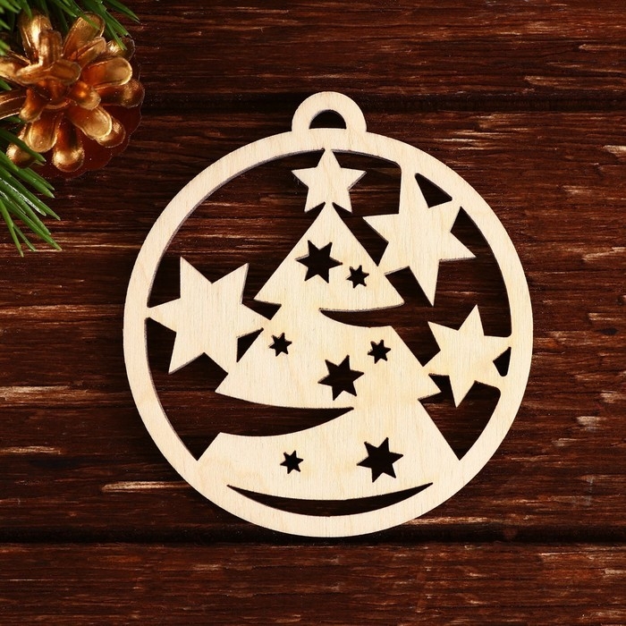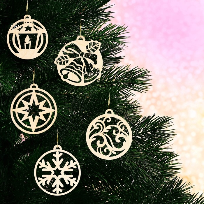 Ёлочные игрушки новогодние «Новый год: Круглые», в деревянной коробке с гравировкой, 6 шт
