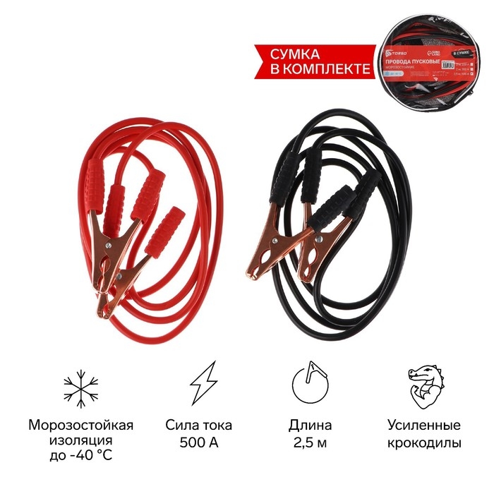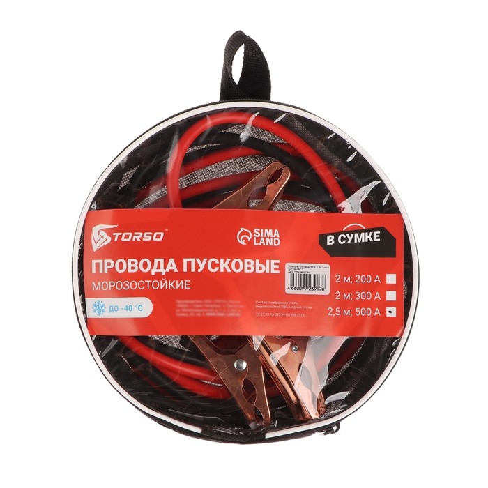Провода пусковые TORSO, 500 А, -30°/+80°, 2.2 м, 12/24 В