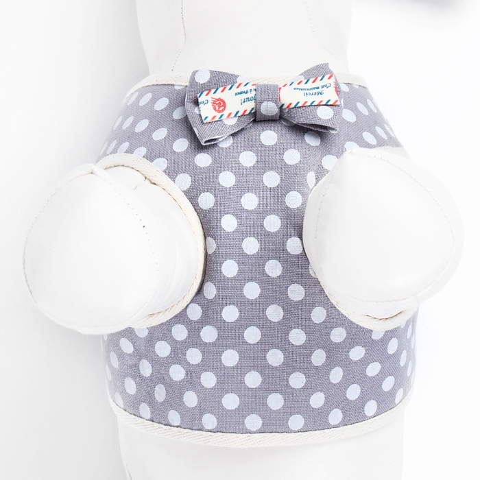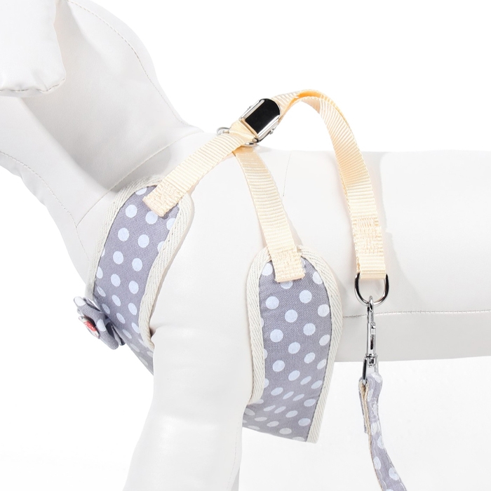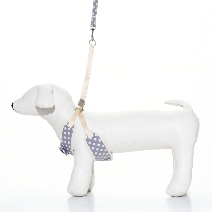 Комплект с мягкой шлейкой "Горох", размер S, поводок 120 х 1,5 см, ОГ 28-62 см, серый