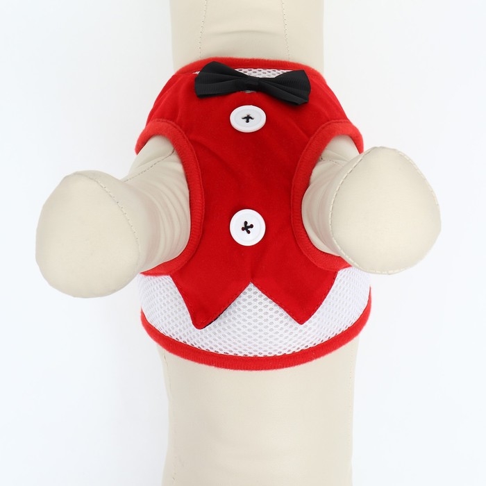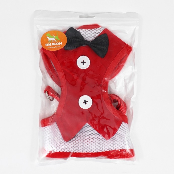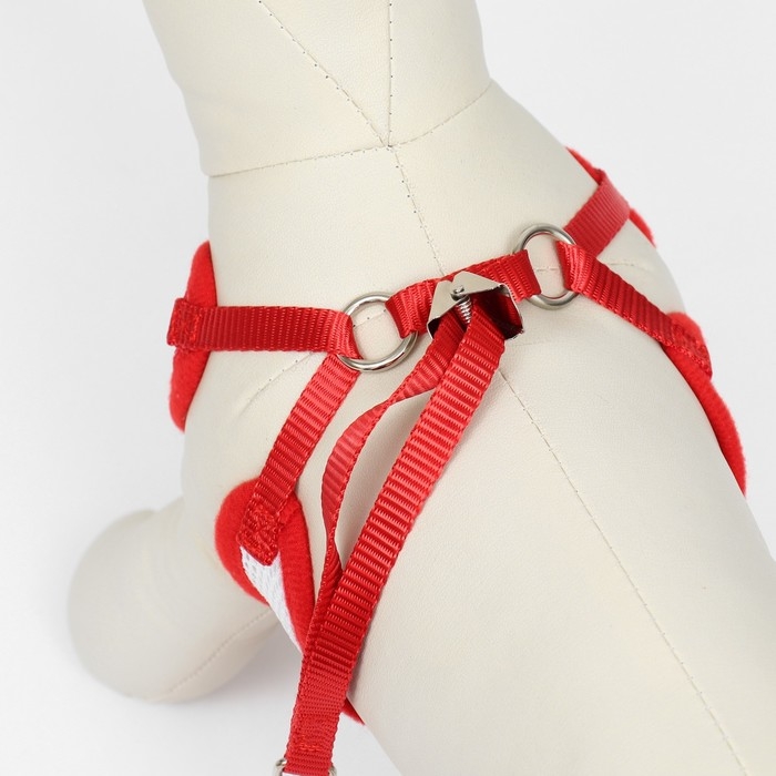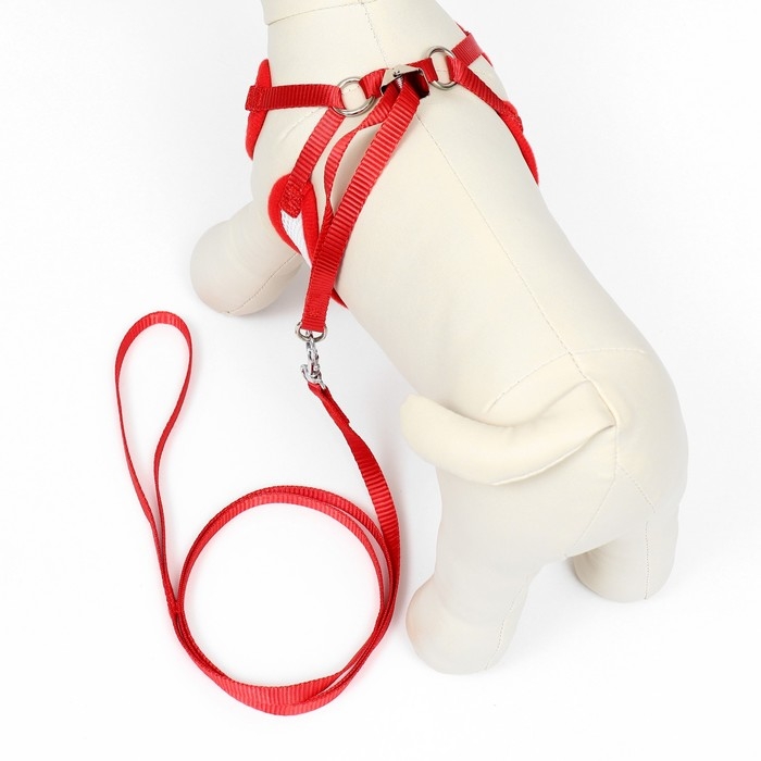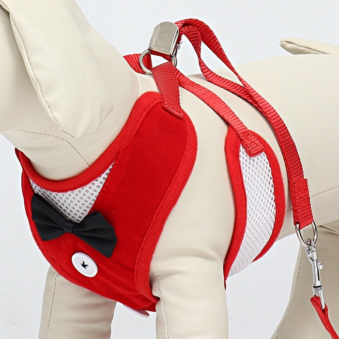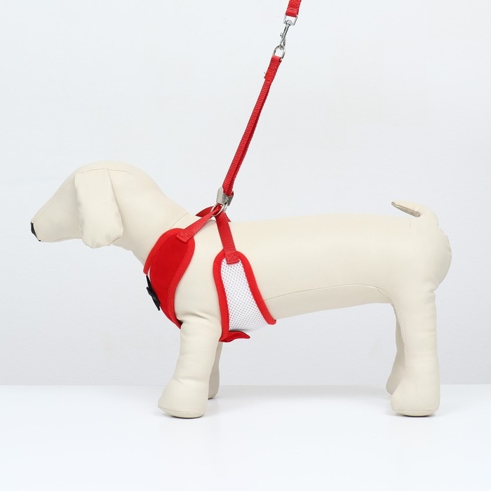Комплект с мягкой шлейкой и бантиком, размер L, поводок 120 x 1,5 см, ОГ 35-50 см, красный