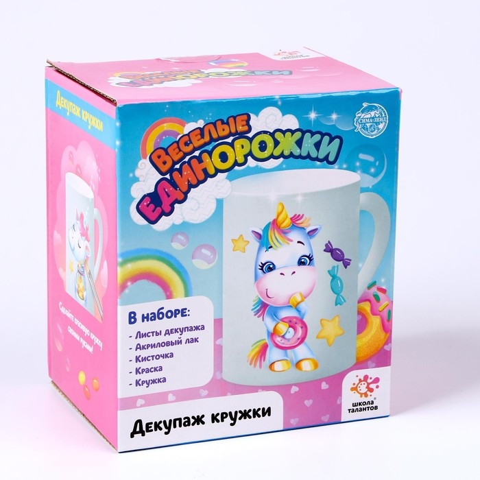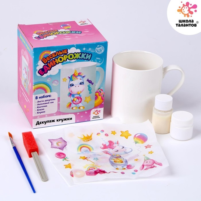 Набор для творчества «Декупаж кружки. Единорожка», с красками, с кисточкой, с акриловым лаком, 5+