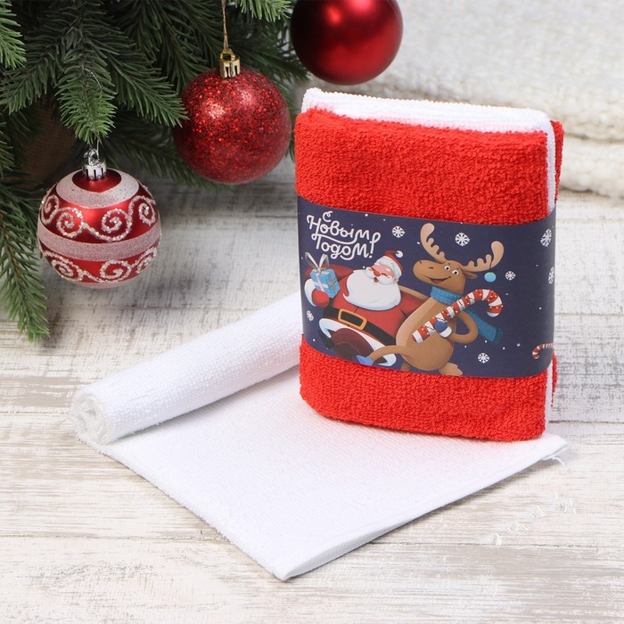 Набор махровых полотенец Этель "Новогодний дуэт" 30х30 см - 3 шт, 340 г/м2, 100% хлопок