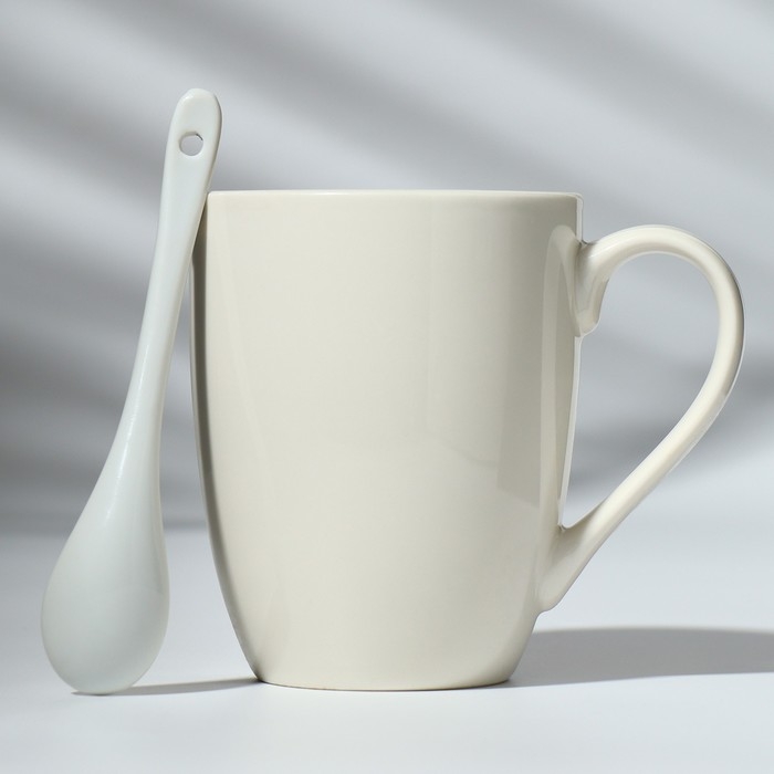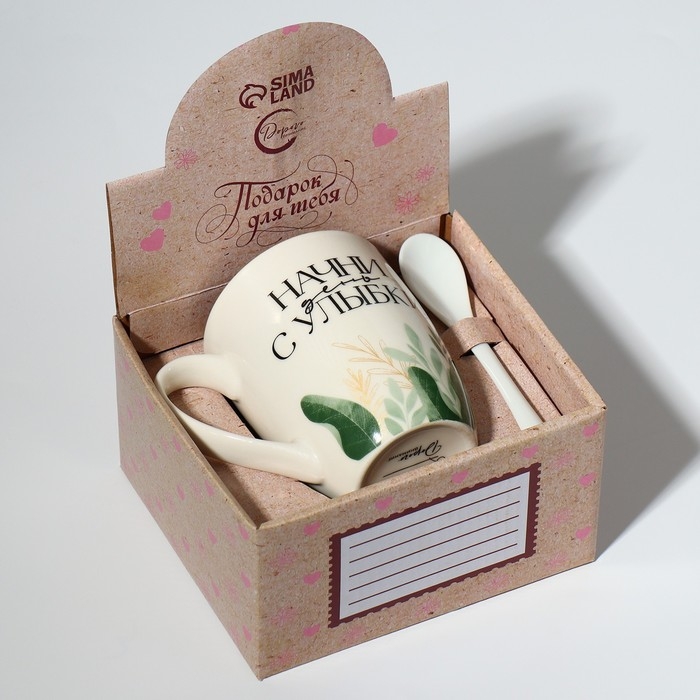 Кружка керамическая с ложкой «Начни день с улыбки», 310 мл, цвет белый