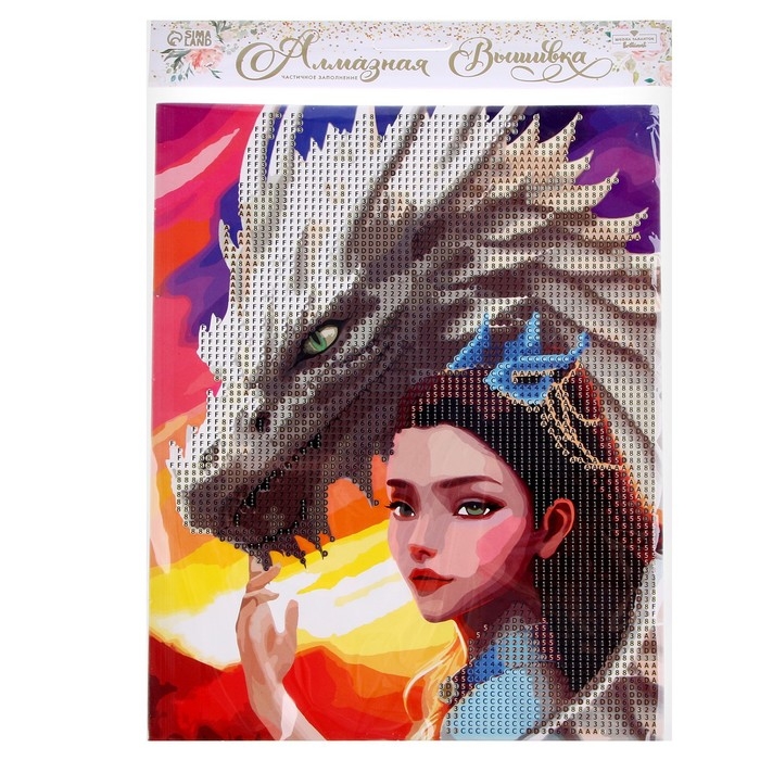 Алмазная мозаика с частичным заполнением на картонной основе «Девушка с драконом», 20 х 25 см