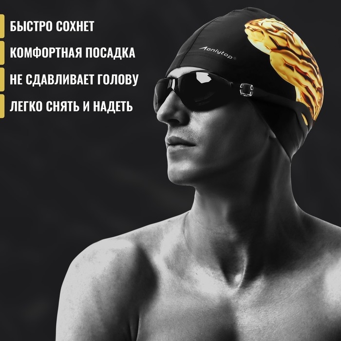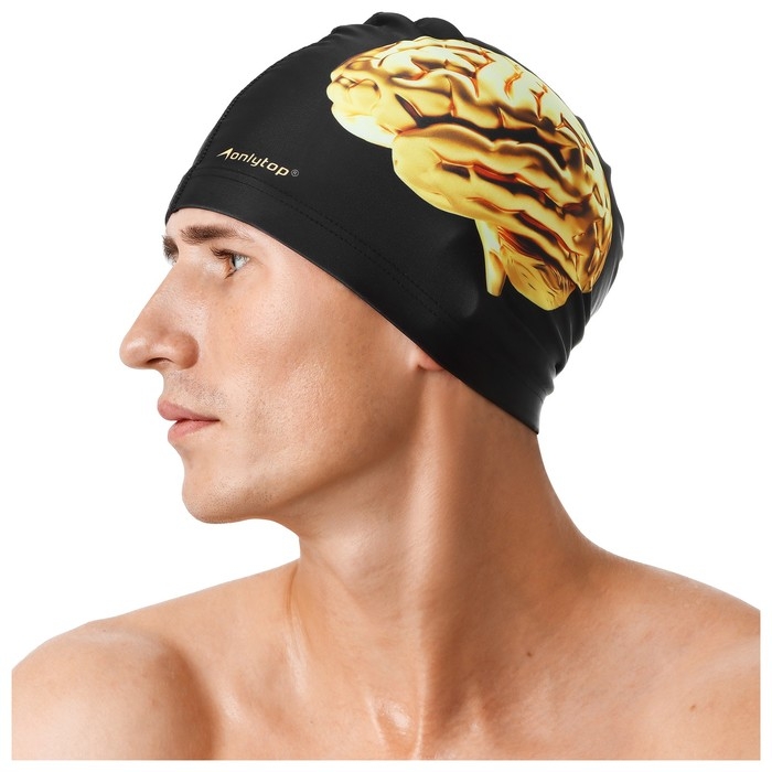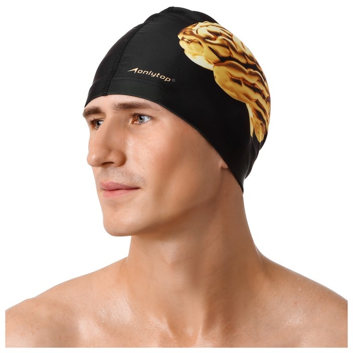 Шапочка для плавания ONLYTOP, тканевая, обхват 54-60 см, цвет чёрный