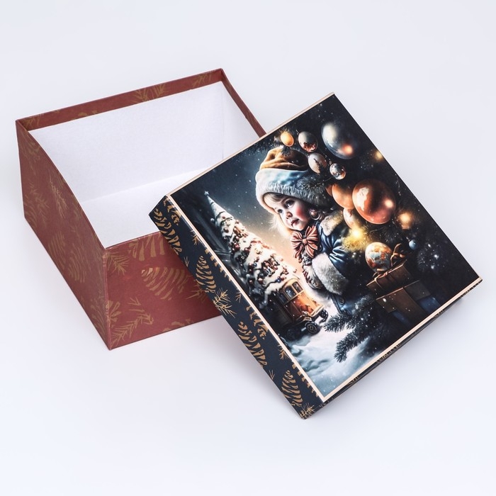 С этой новогодней квадратной коробкой ваши подарки станут еще более особенными, принося радость и удовлетворение волшебных моментов обмена подарками.