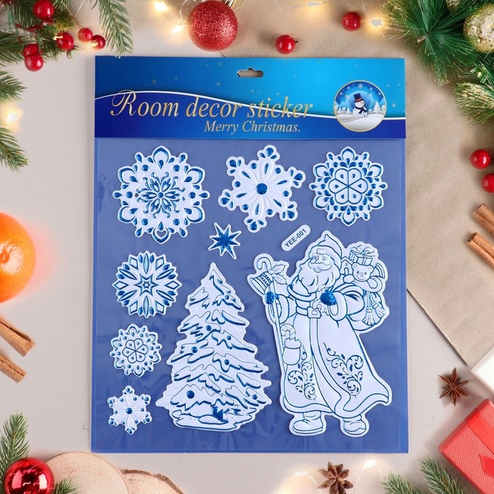 Наклейки на окна "Новогодние" елка, белый тон, 38х30 см