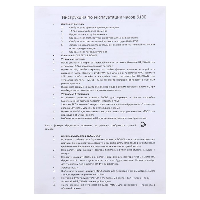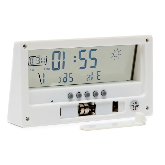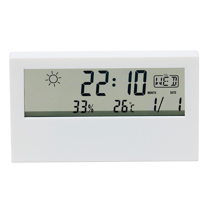 Часы - будильник электронные настольные: термометр, календарь, гигрометр, 13.3 х 7.4 см