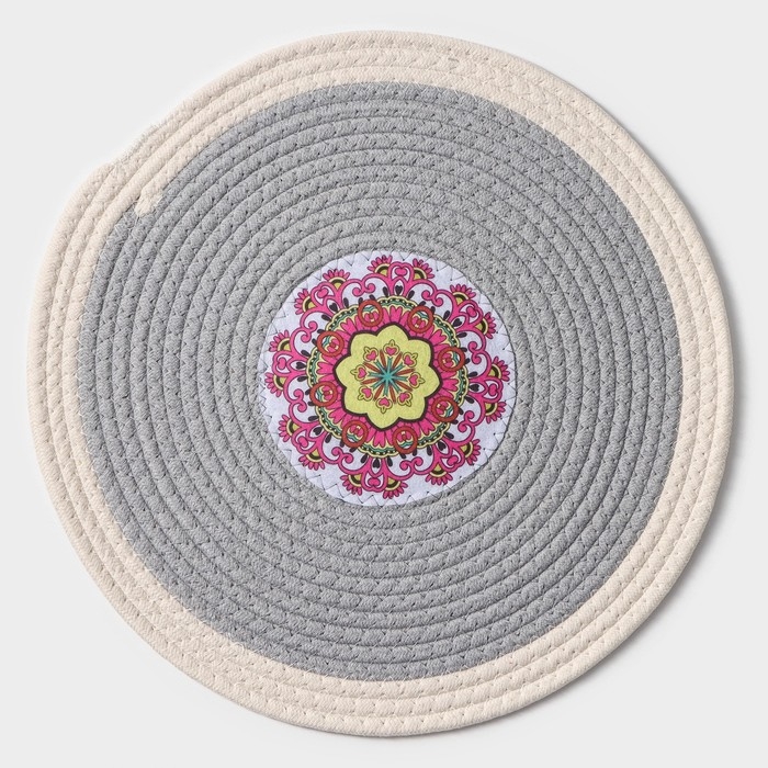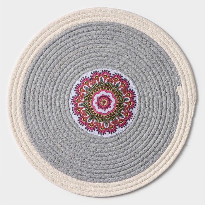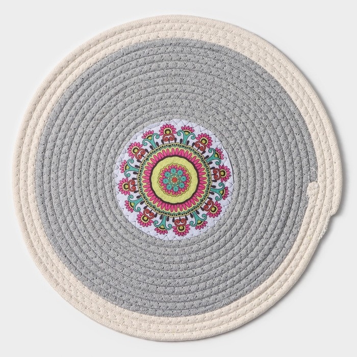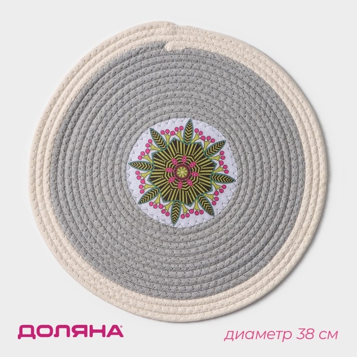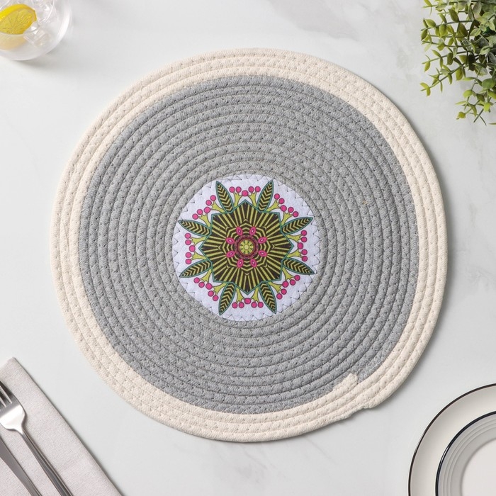 Салфетка сервировочная на стол Доляна «Мира», d=38 см, цвет серый, рисунок МИКС
