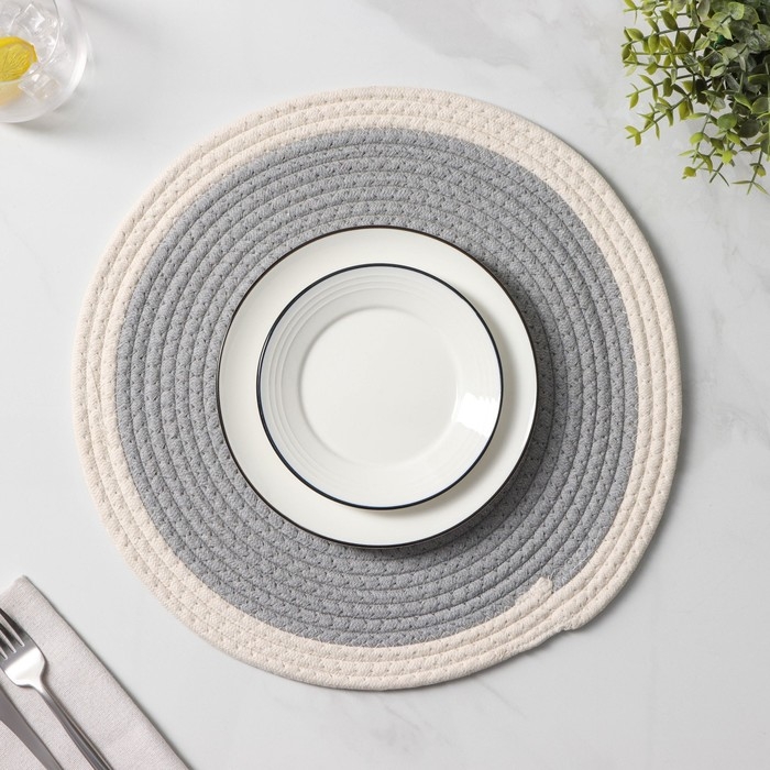 Салфетка сервировочная на стол «Тэм», d=38 см, цвет тёмно-серый