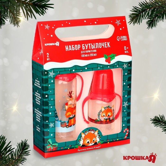 Подарочный набор «Новогодние друзья»: бутылочки для кормления 150 и 250 мл., прямые, от 0 мес., Крошка Я