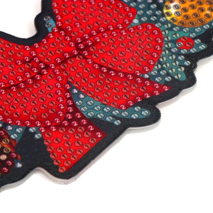 Чтобы получить сверкающую картинку, ребёнку предстоит разложить кристаллики специальным карандашом по схеме. Основа с клеевым покрытием будет надёжно удерживать стразы.