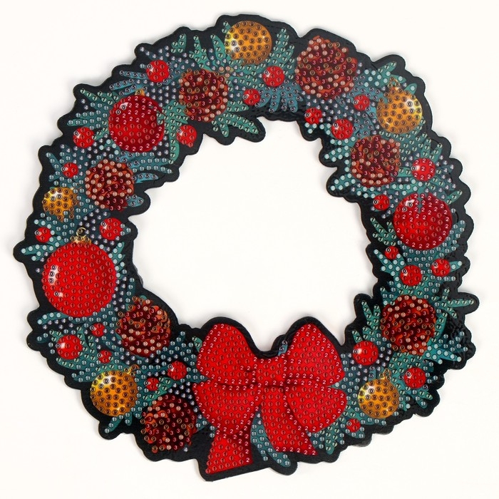 Алмазная мозаика на новый год с полным заполнением на фигурке. Новогодний венок «С Новым Годом», 20 х 20 см, новогодний набор для творчества