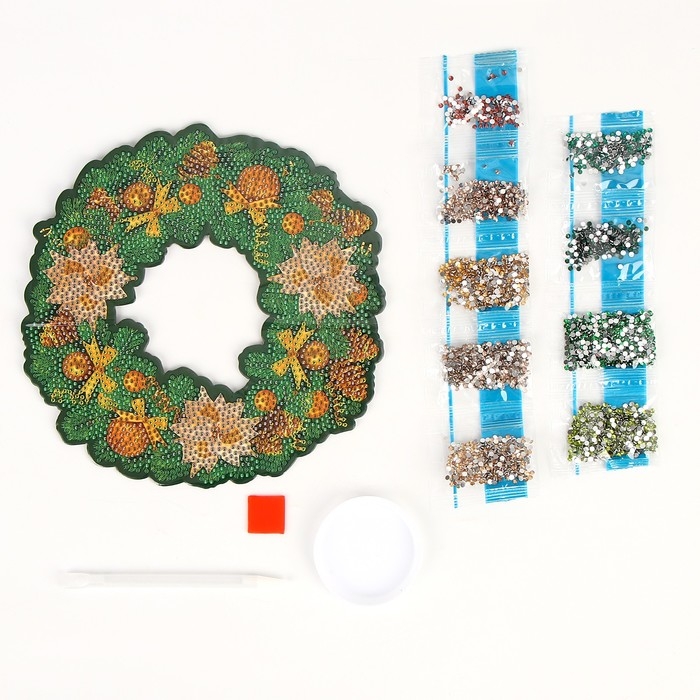 Алмазная мозаика на новый год с полным заполнением на фигурке. Новогодний венок «Зимняя сказка», 20 х 20 см, новогодний набор для творчества