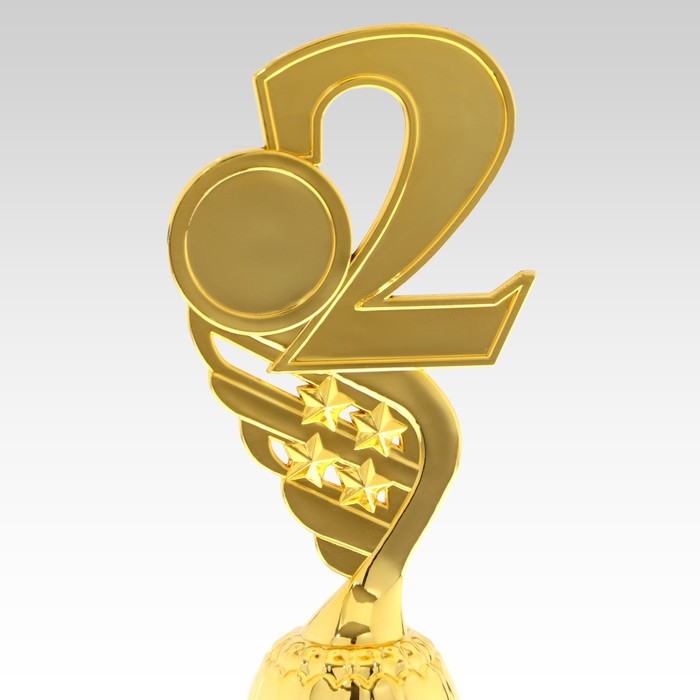 Кубок «2 место», наградная фигура, золото, подставка пластик, 16,8 × 6,2 × 6,4 см.