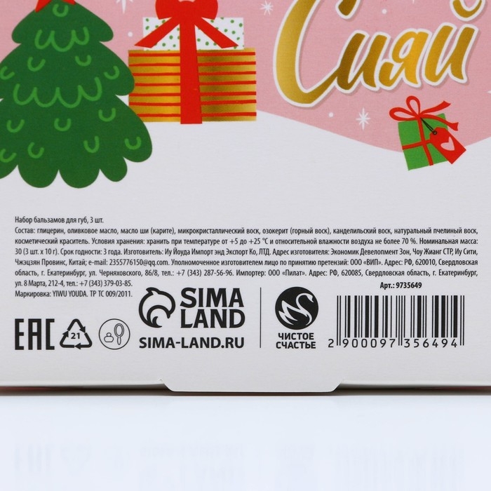 Подарочный набор косметики «Снежной зимы!», бальзам для губ, 3 х 10 г, Новый Год