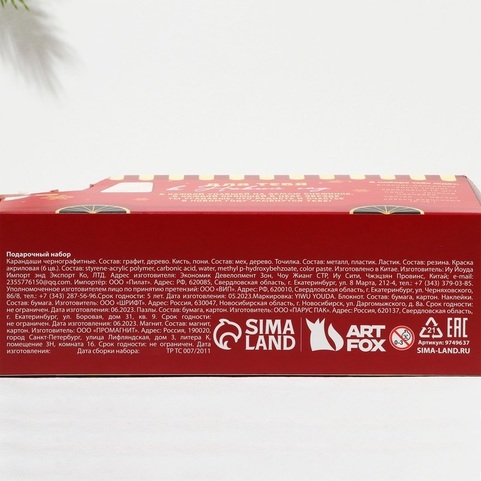 Блокнот, Карандаши, Кисть, Краски, Ластик, Наклейки, Пазлы, Точилка