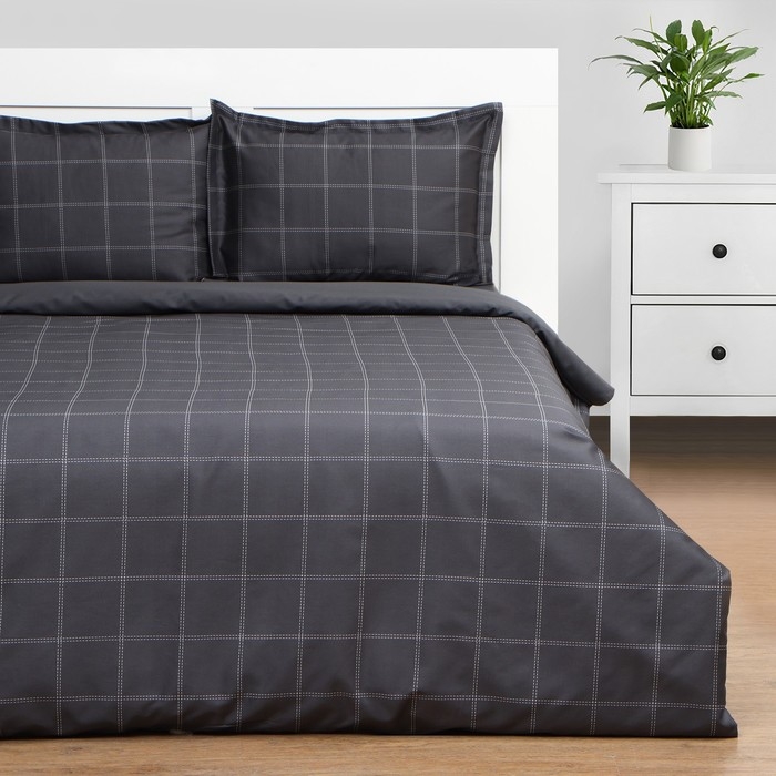 Постельное бельё Этель дуэт Cage: graphite, 143х215 см-2шт, 215х240 см, 50х70+3 см-2 шт, мако-сатин, 114г/м2