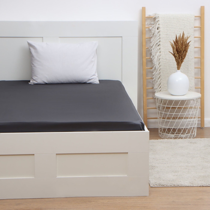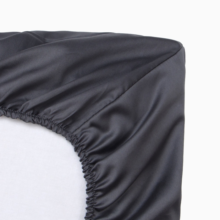Простыня на резинке Этель 160*200*25 см, цв. темно-серый,100% хлопок, мако-сатин, 114г/м2