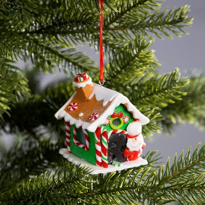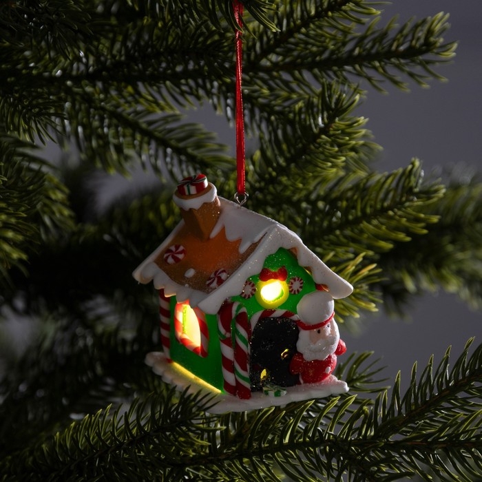 Ёлочная игрушка «Дом Деда Мороза» 6 × 7.8 × 5.5 см, от батареек, свечение тёплое белое
