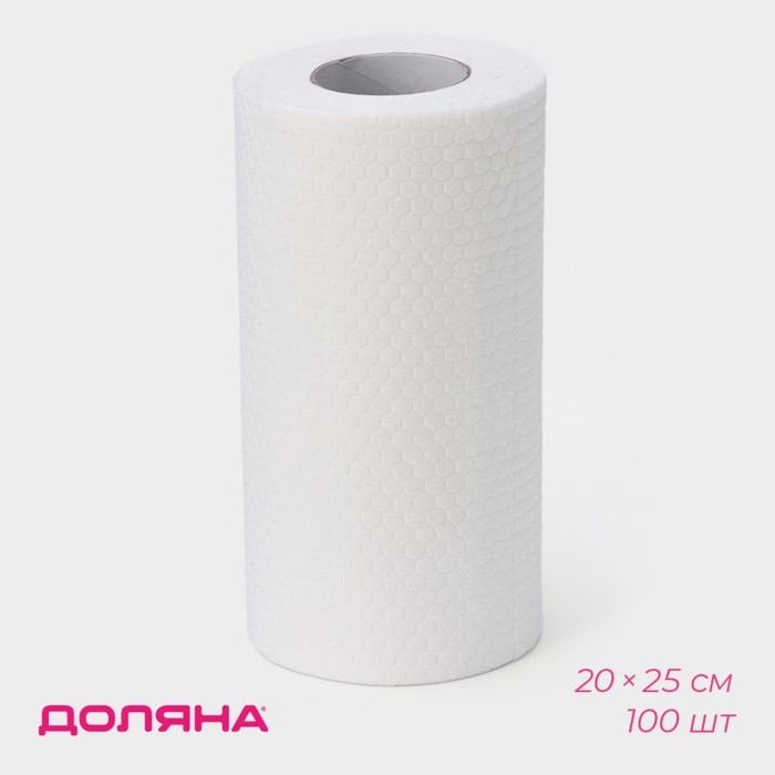 Салфетки для уборки Доляна, рулон, многоразовые, безворсовые,100 шт, 20×25 см, цвет белый