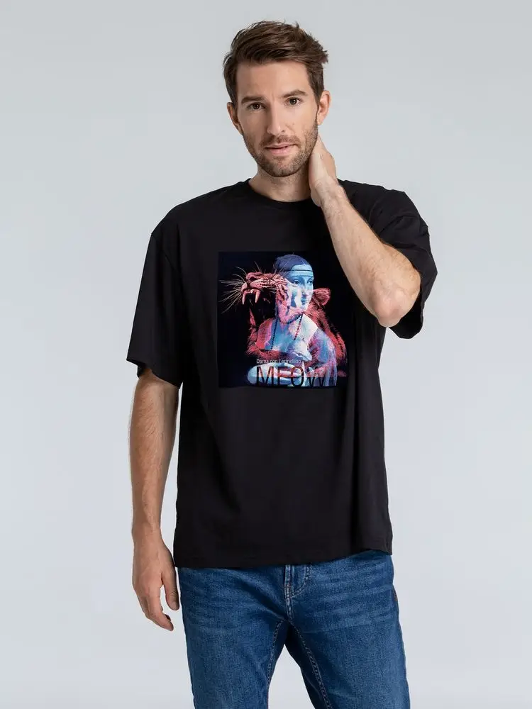 Футболка оверсайз «Дама с горностаем», черная, размер XS/S