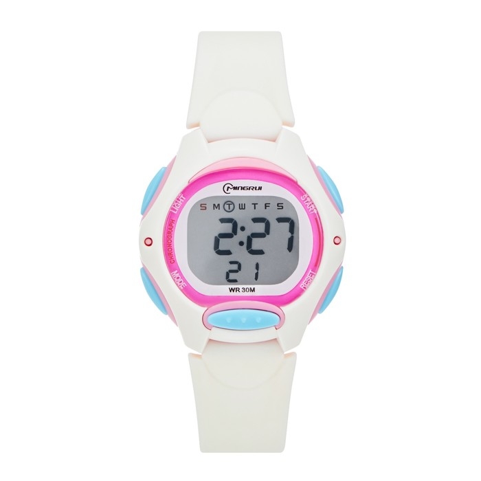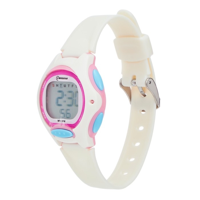 Часы наручные детские электронные, d-3.5 см, будильник, ремешок l-18.5 см, 3 АТМ, белые