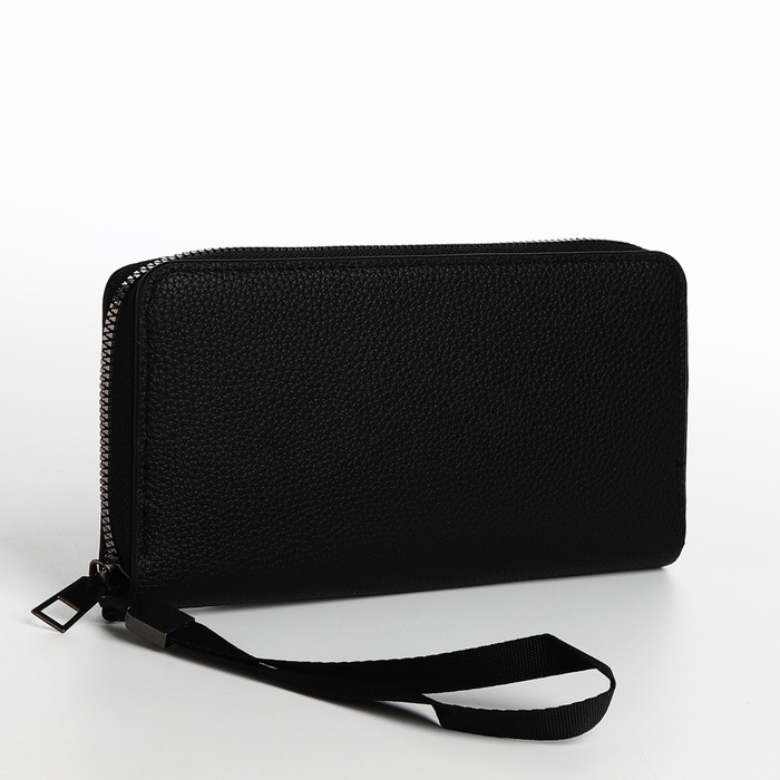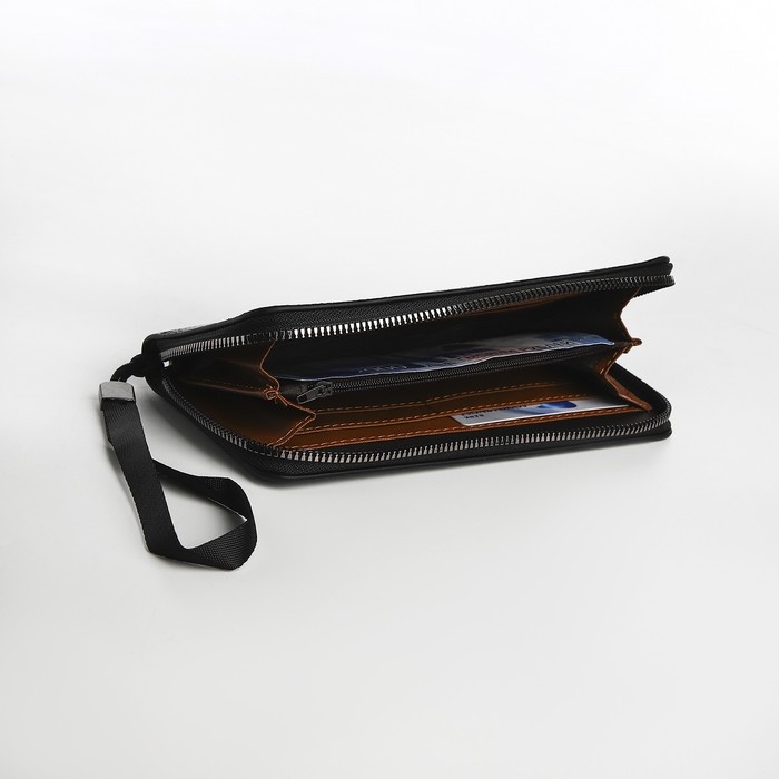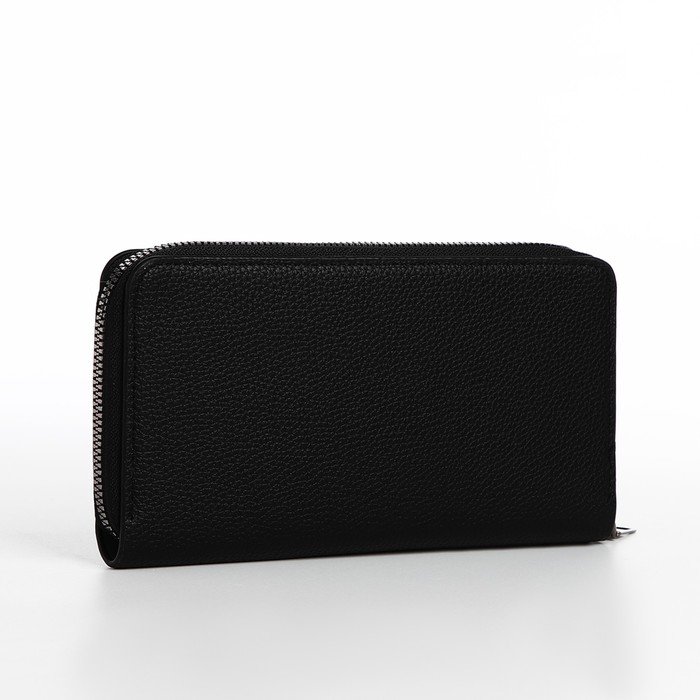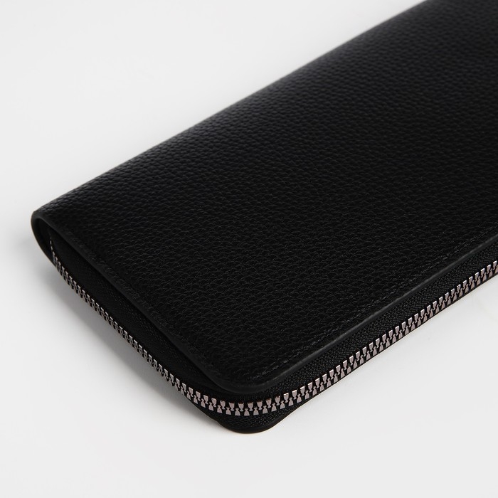 Портмоне мужское на молнии, отдел для купюр, для карт, для монет, цвет чёрный