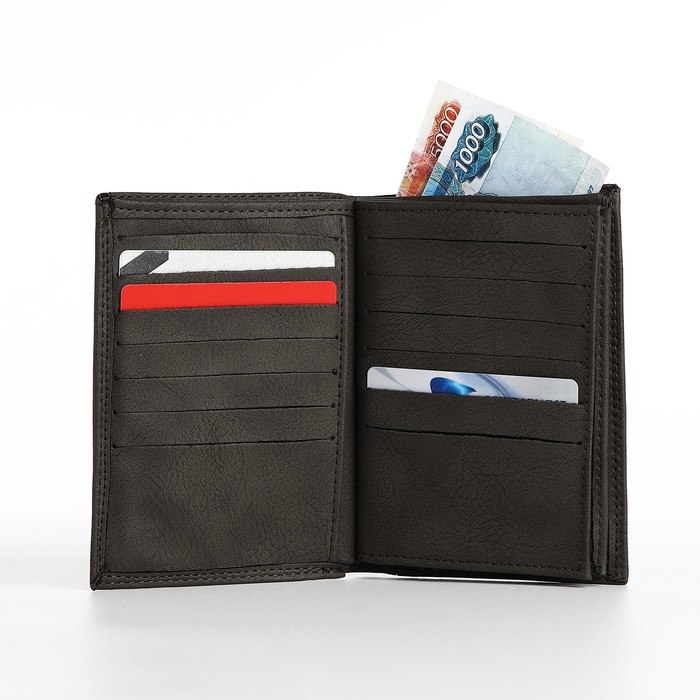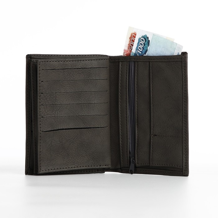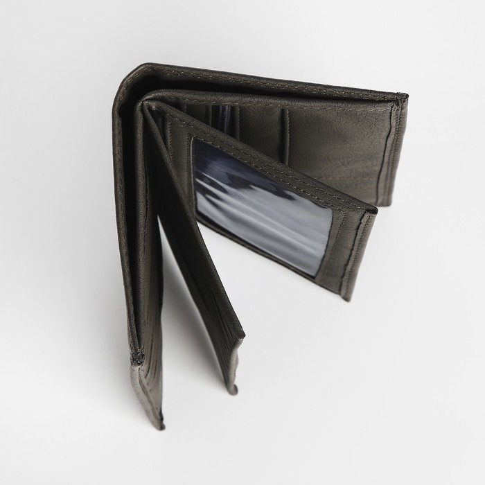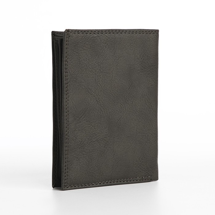 Портмоне мужское без застёжки, 3 в 1, отдел автодокументов, паспорта, карт, купюр, цвет серый