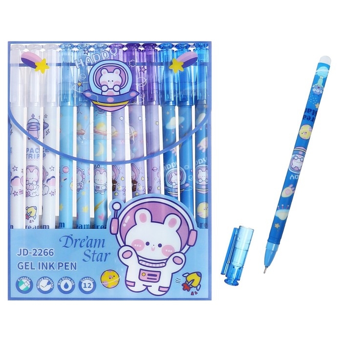 Набор гелевых ручек со стираемыми чернилами, 12 штук, 0.38мм, синий стержень, микс