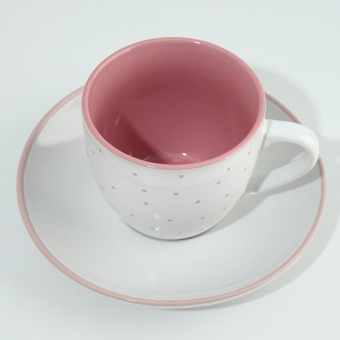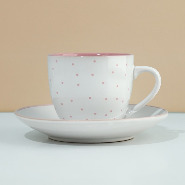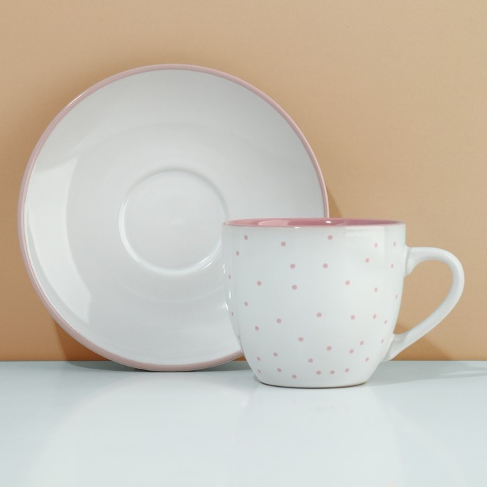 Чайная пара керамическая «Лист», 2 предмета: кружка с ложкой 180 мл, блюдце d=13,5 см, цвет белый