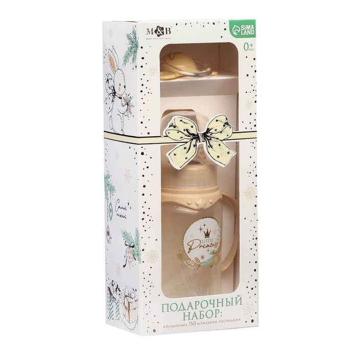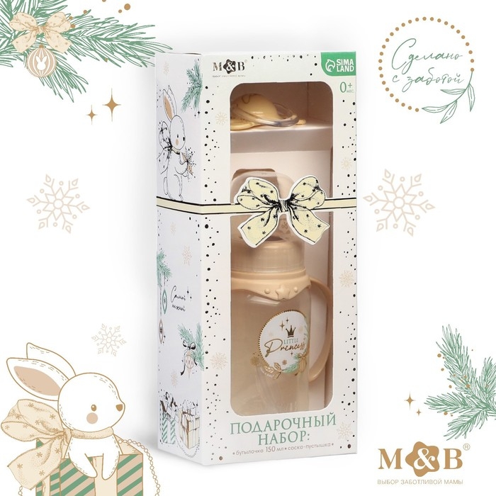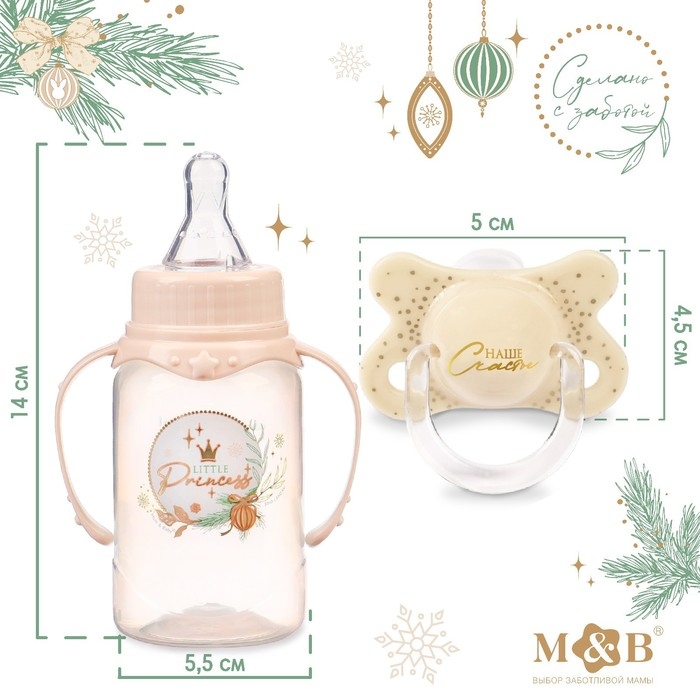 Подарочный набор новогодний «Little Princess»: бутылочка для кормления 150 мл. + пустышка силикон ортодонтическая, Mum&Baby