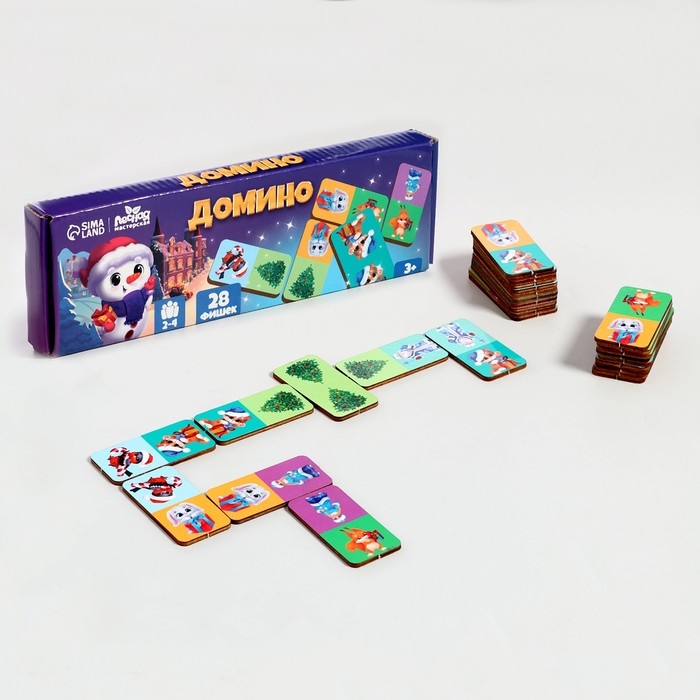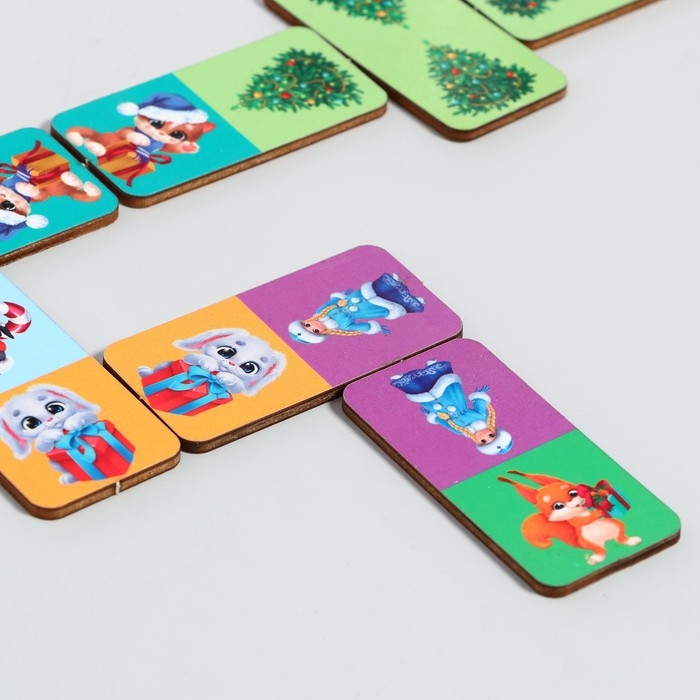 Домино — старинная игра, известная всему миру. Специально для малышей мы разработали свой вариант этого интересного развлечения с яркими новогодними рисунками.