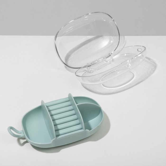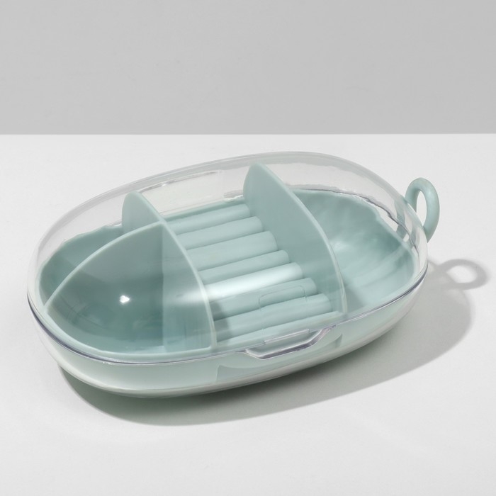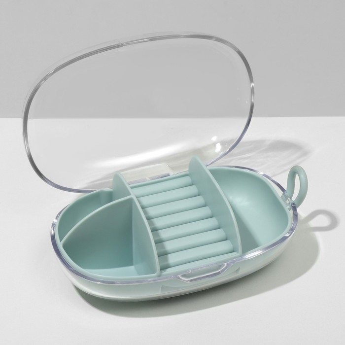 Подставка для украшений «Шкатулка портативная» 3 ячейки, 7 полос, 15×8×5 см, цвет зеленый