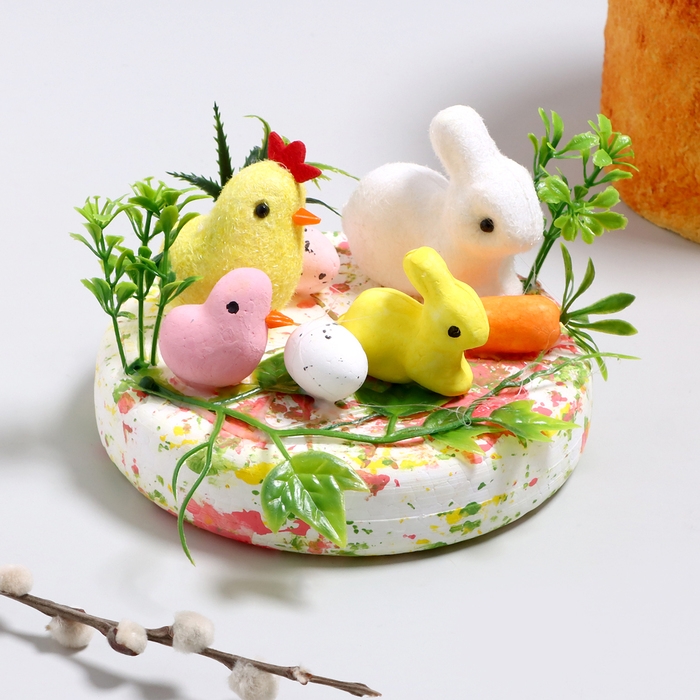 Пасхальный декор «Курочка и зайцы» 13,5 × 13,5 × 8 см
