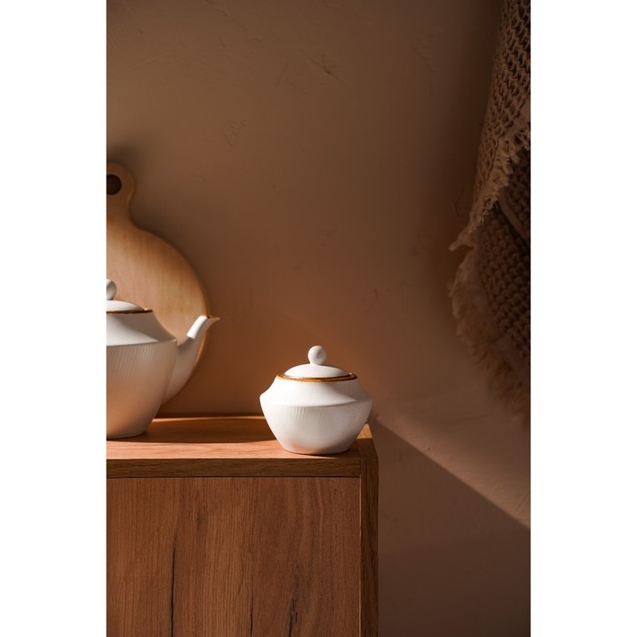 Сахарница фарфоровая SL Home «Волна в камне», 300 мл, 9,5×10,5 см, цвет белый