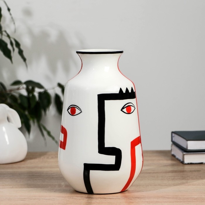 Ваза керамика настольная "Пикассо" (ручная роспись) лицо, h-24 см d-7,5 см