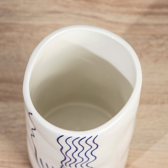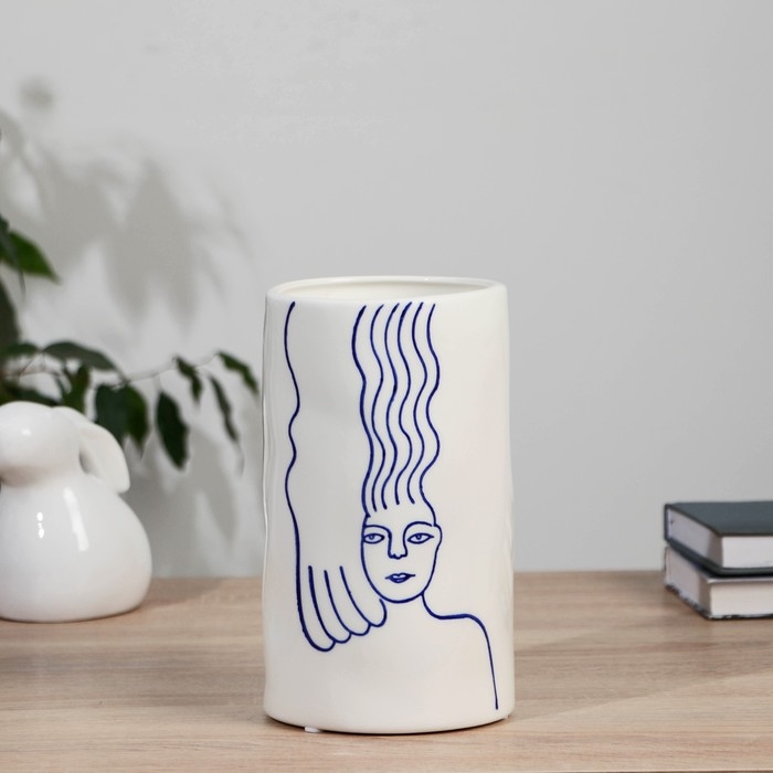 Ваза керамика настольная "Пикассо" (ручная роспись) девушка, h-20,5 см d-12 см, сине-белый