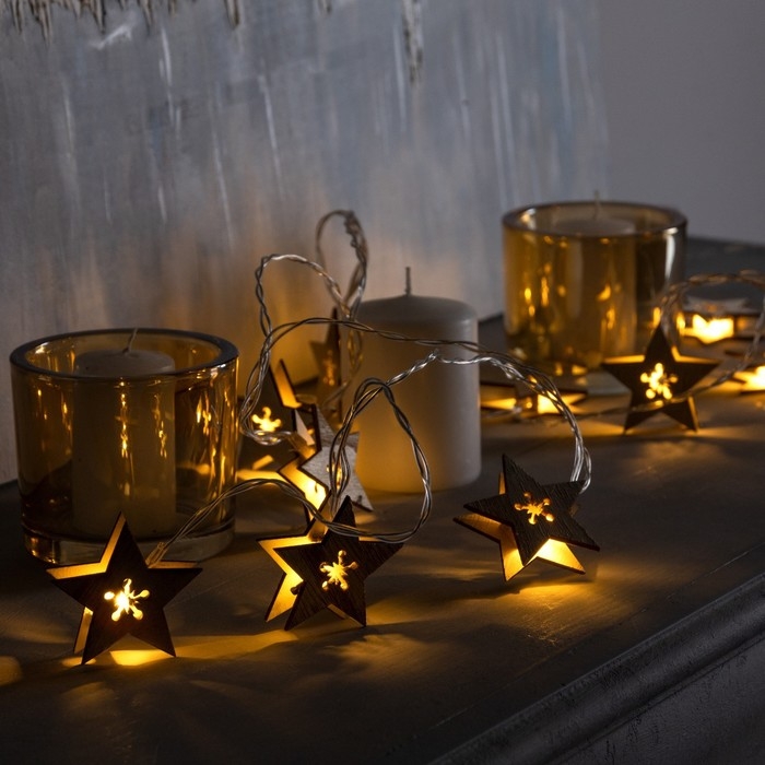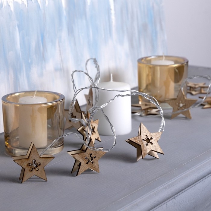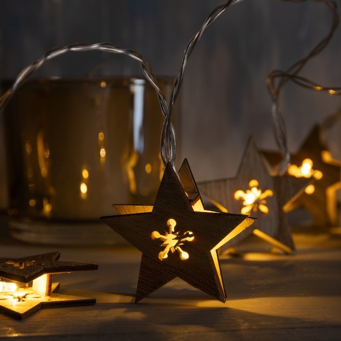 Гирлянда «Нить» 2.5 м с насадками «Звезда», IP20, прозрачная нить, 10 LED, батарейки AAх2 (нет в комплекте), свечение тёплое белое