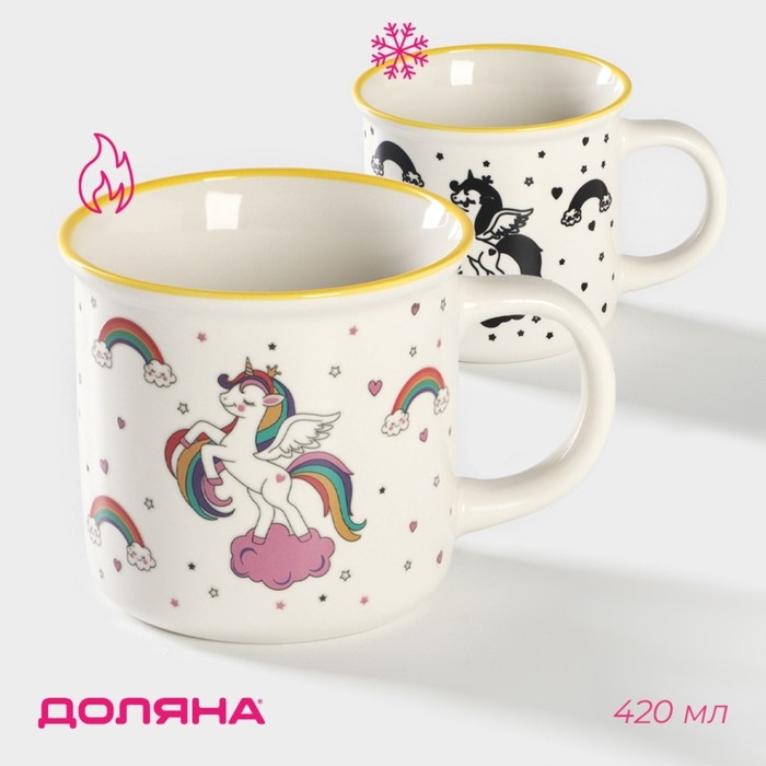 Кружка-хамелеон фарфоровая Доляна «Единорог», 420 мл