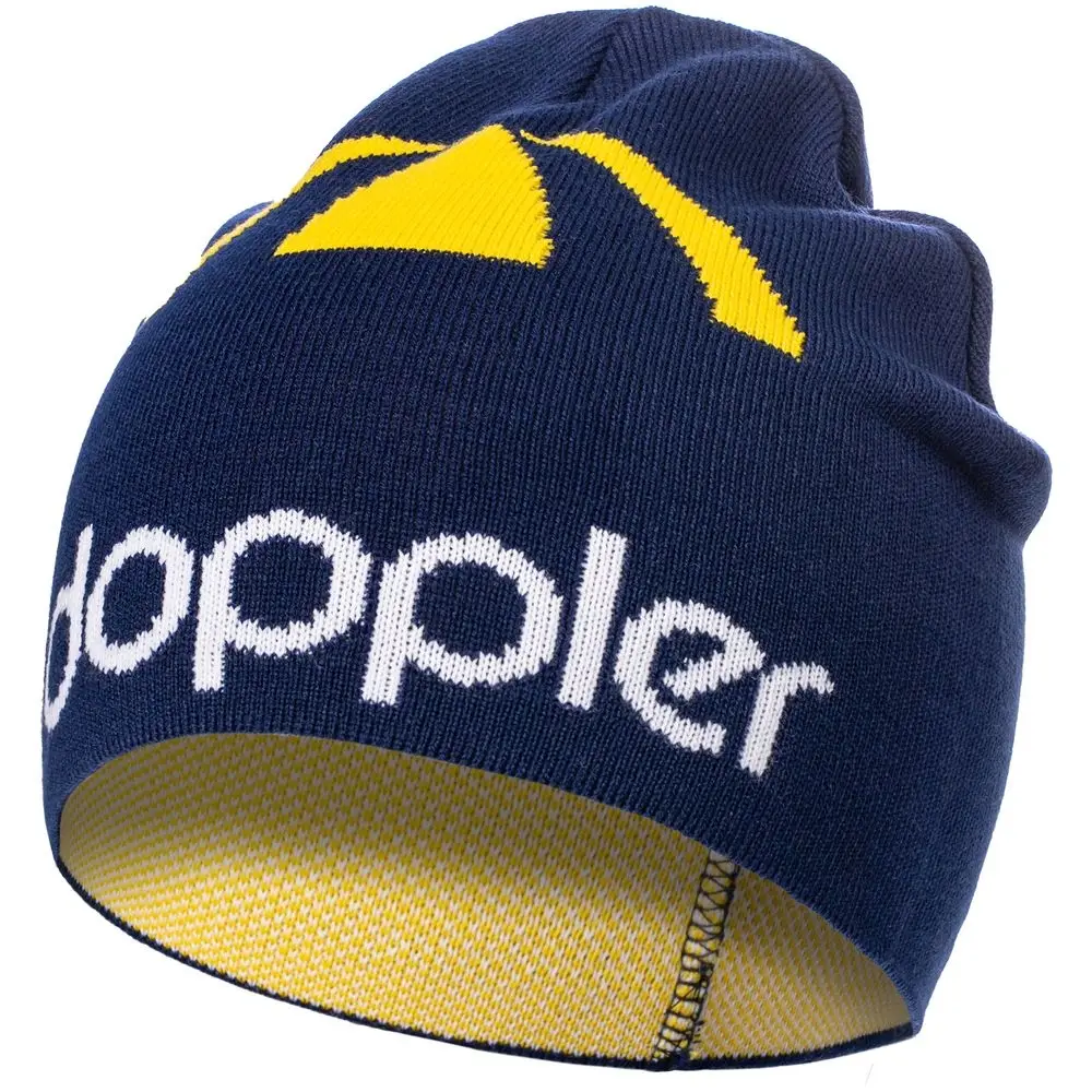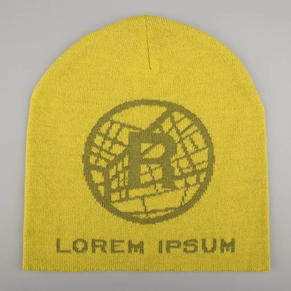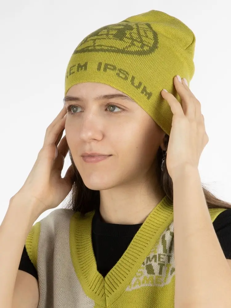 Модель: удлиненная однослойная шапка с жаккардовым узором в 2-3 цвета, без отворота, без помпона.