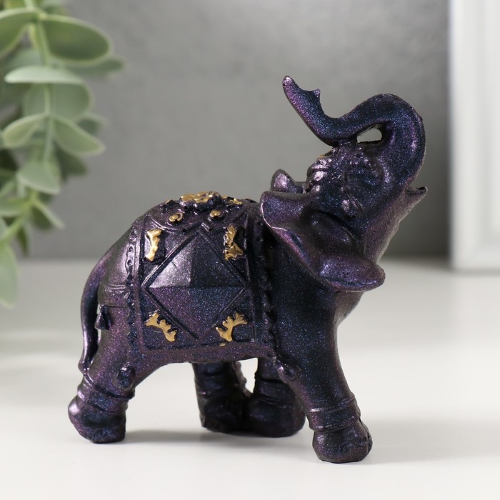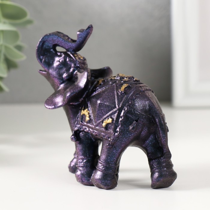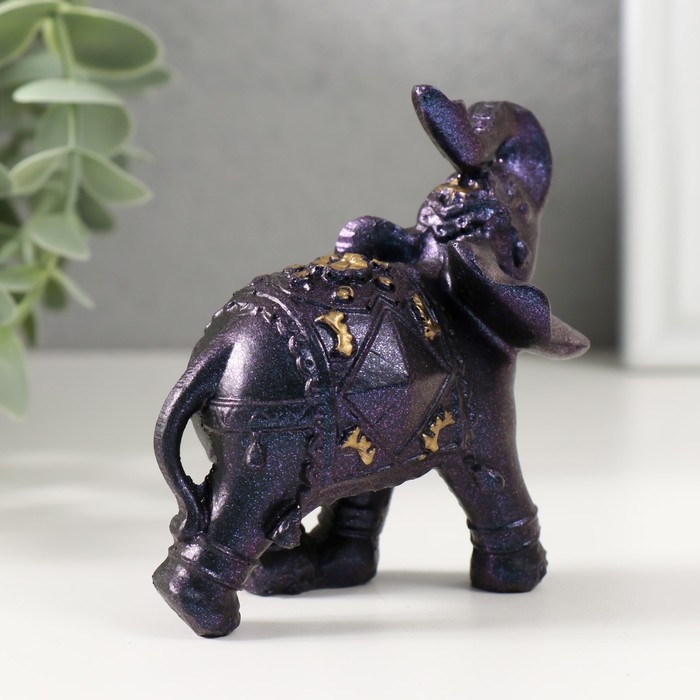 Сувенир полистоун "Сине-фиолетовый слон с попоной и золотом" 8,5х4,5х8,5 см