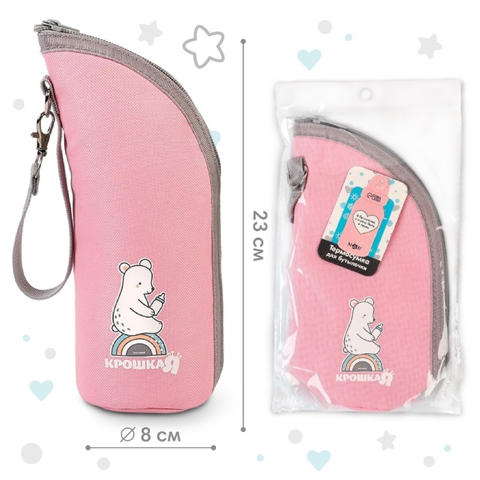 Термосумка для бутылочки Крошка Я Basic, термо чехол на молнии, цвет розовый