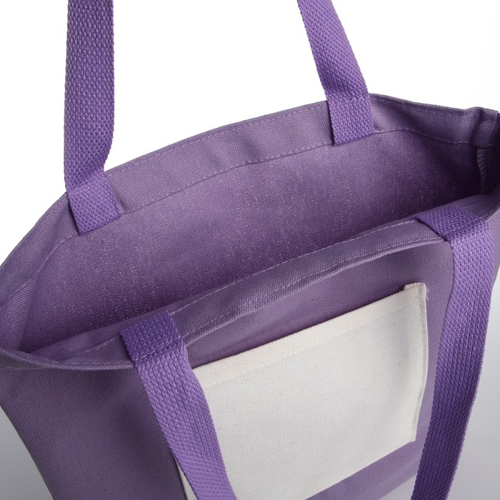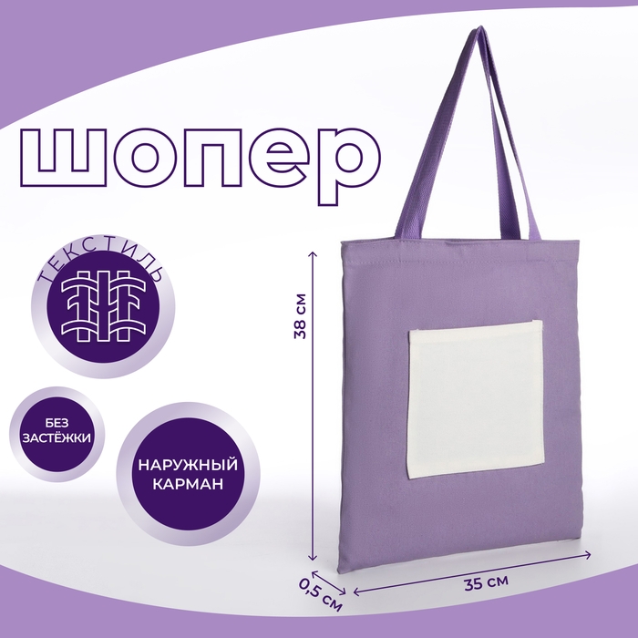 Шопер без застёжки, из текстиля, цвет сиреневый/белый