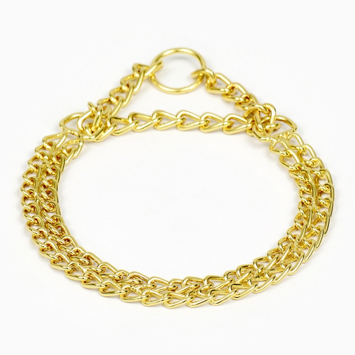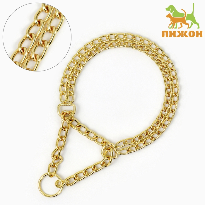 Ошейник - полуудавка металлический двухрядный, 40 см, толщина проволоки 2 мм, золотистый
