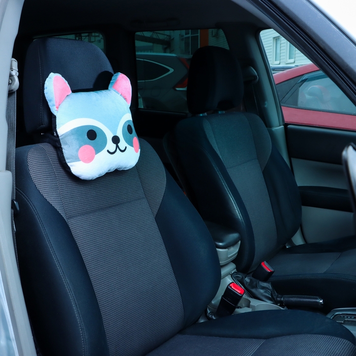 Подушка на подголовник в виде енота - это забавный и функциональный аксессуар для автомобиля. Размеры подушки составляют 30x25x10 см, а крепится она на резинке к подголовнику сиденья.