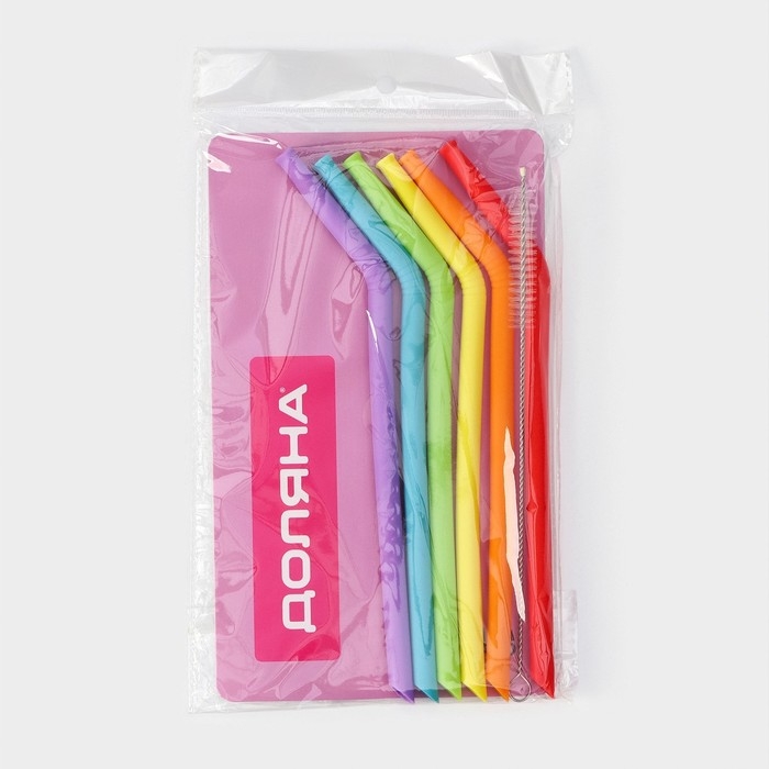 Трубочки силиконовые для напитков Доляна, 6 трубочек (1×21,5 см), ёршик