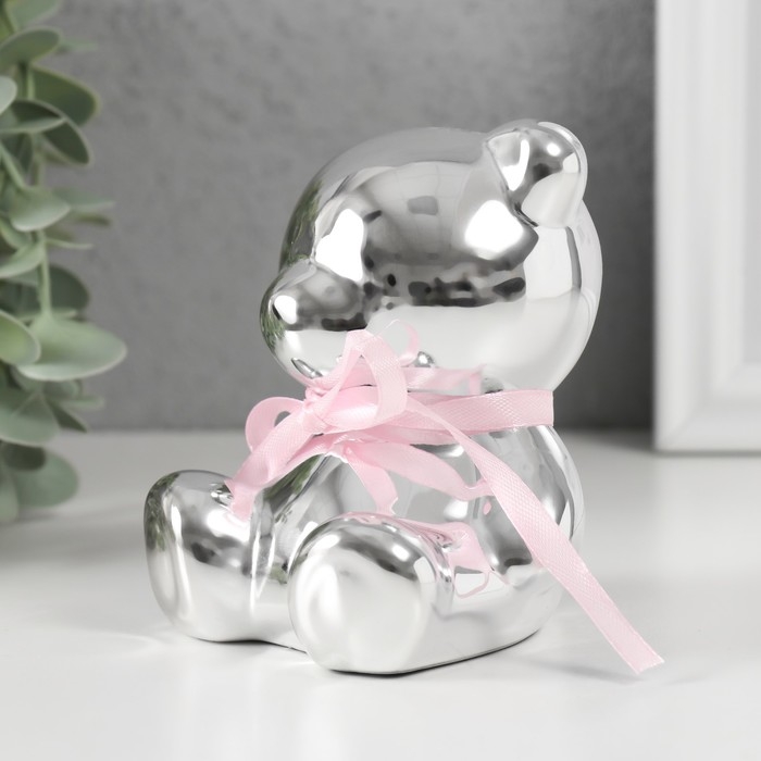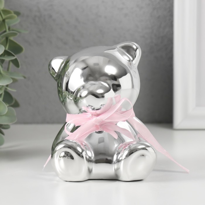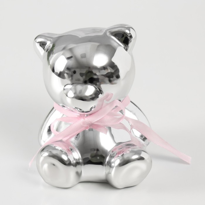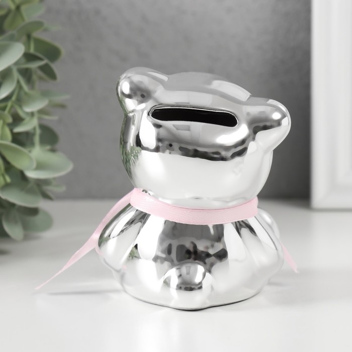 Копилка керамика "Мишутка с бантиком" серебро 9х8х9,8 см